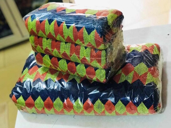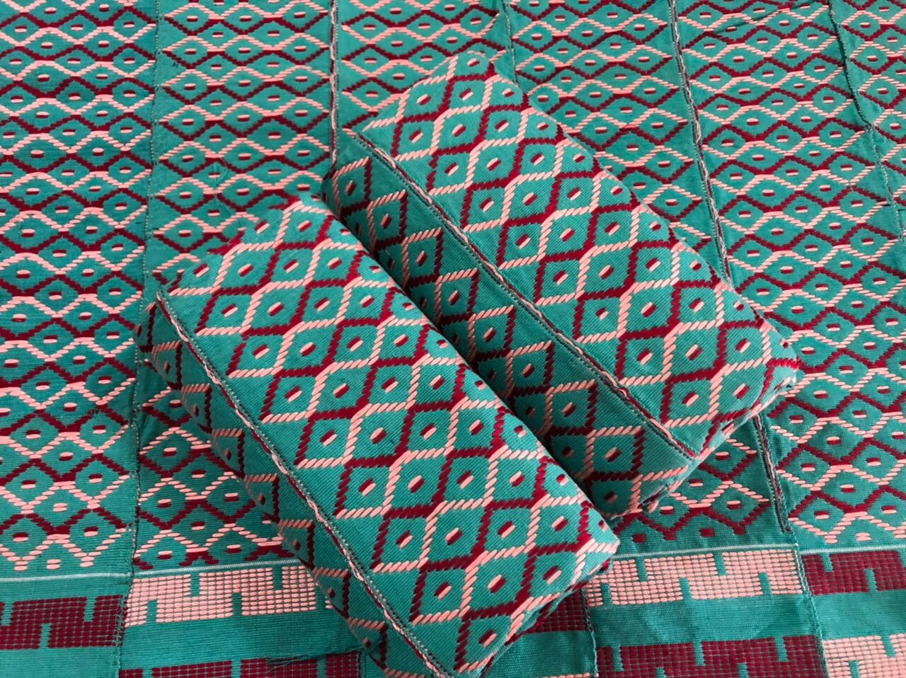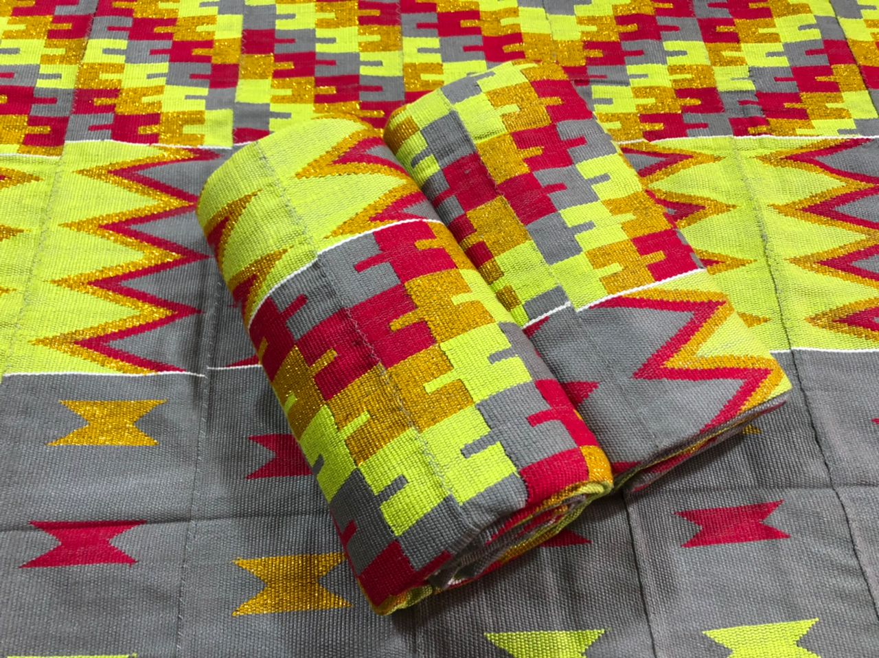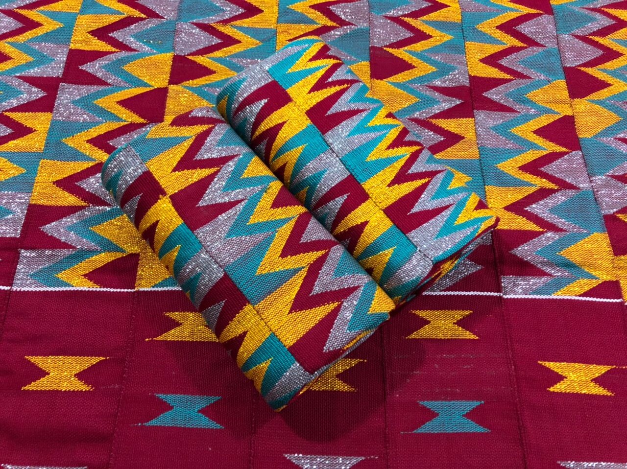 Real, exclusive Ghanaian Kente cloth, designed by skilled craftsmen and woven by specialist weavers just for Neamapapa's Exclusive Range.