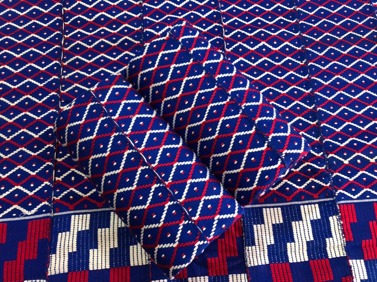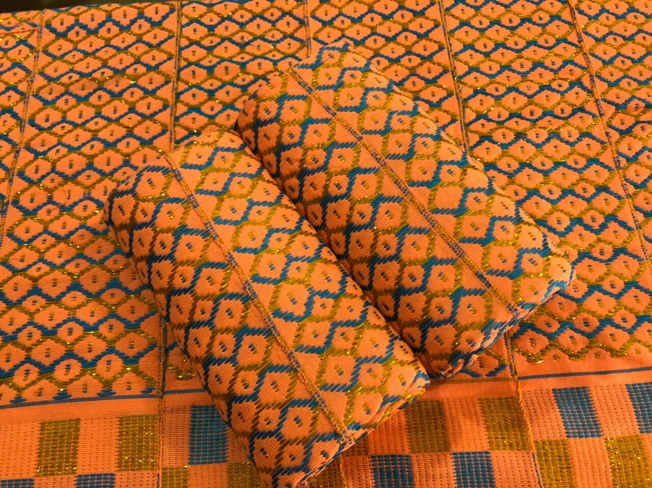 Exclusive Ghanaian Kente-print duvet and pillow covers, designed by skilled craftsmen and sewn by specialist tailors just for Neamapapa's Exclusive Range.
