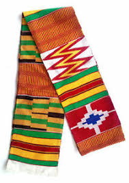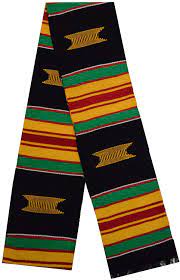 Colourful Ghanaian kente stoles made from the finest yarn and woven in Bonwire, from where Kente originated, and where the Asantehene's (King of Asante) royal weavers are drawn from.