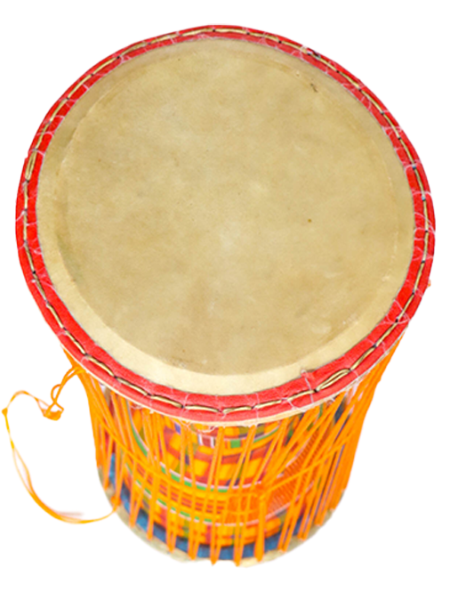 Handmade African drum crafted from the finest African wood and emblished with authentic Kente cloth.
