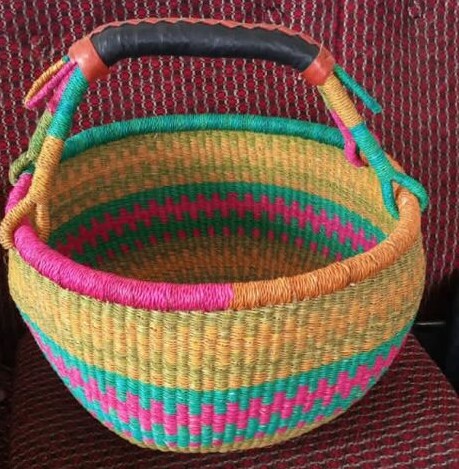 Show your loved ones you care by treating them to a beautiful handwoven African basket with reall eather handles.
