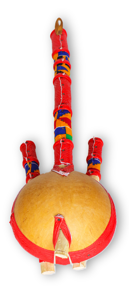 Handcrafted African banjo made from the best African wood by the finest craftsmen, and adorned with authentic Bonwire Kente.